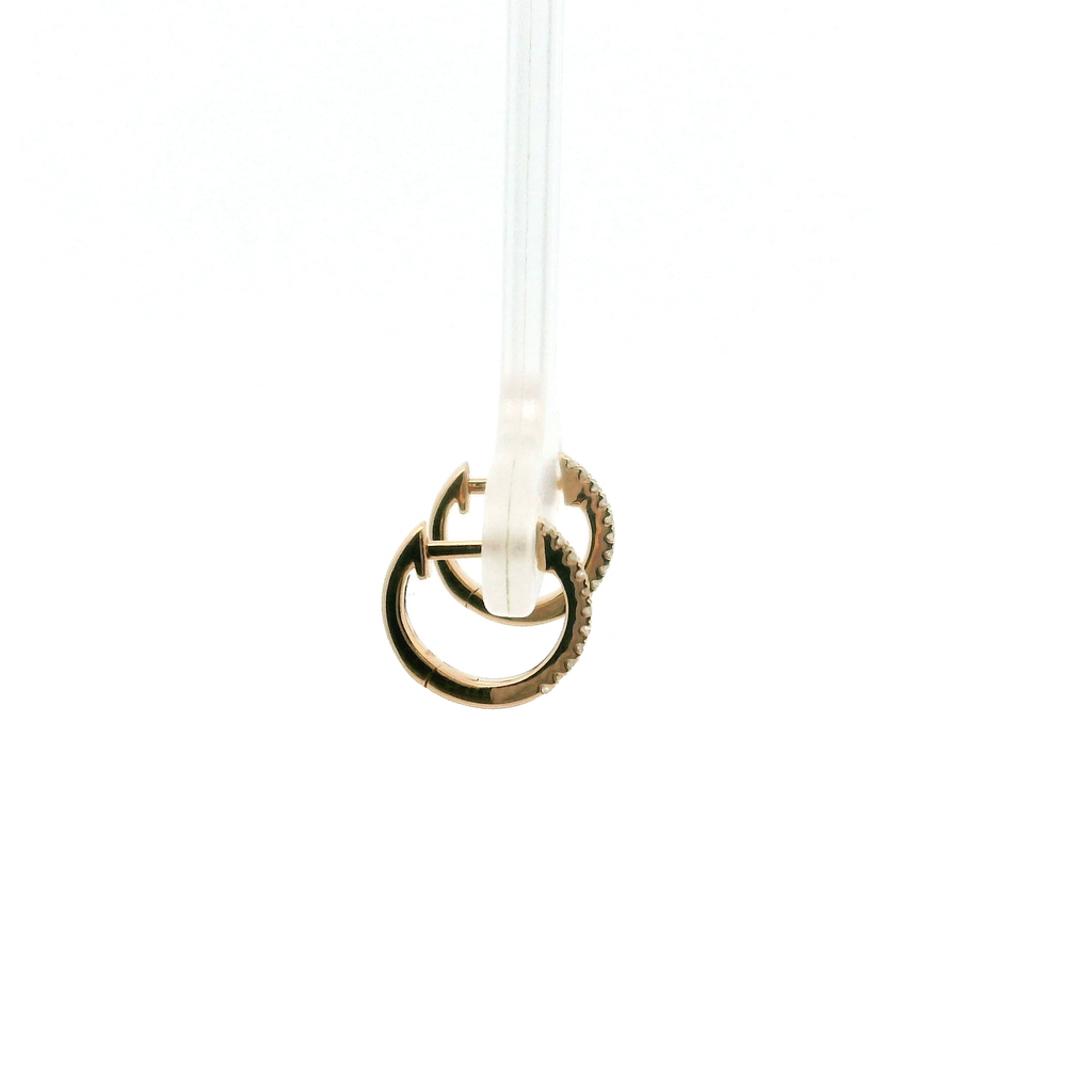 Grace and radiance meet in these exquisite Lady’s 14 Karat Rose Gold Diamond Hoop Earrings, crafted to elevate everyday elegance. Each hoop shimmers with brilliantly set diamonds totaling .08 carats, catching the light with every movement. The warm glow of polished yellow gold beautifully complements the sparkle of each stone, creating a timeless balance of sophistication and charm.