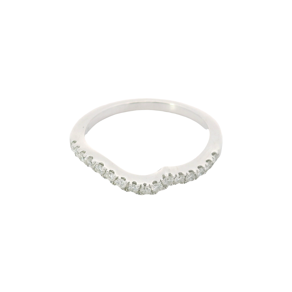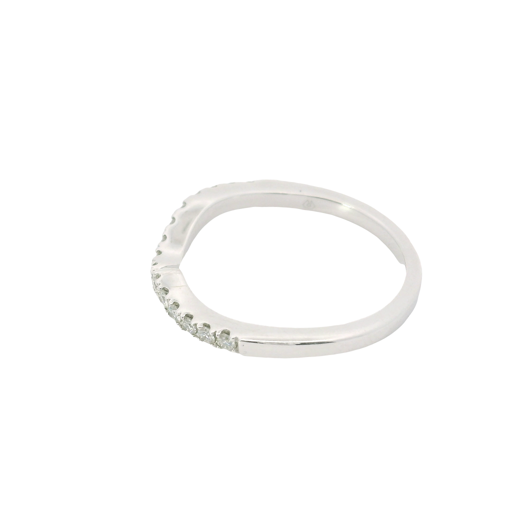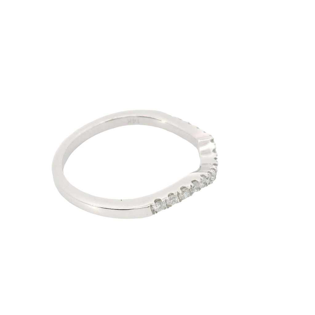 Delicate yet radiant, this 14 karat white gold wedding band features sixteen round diamonds, totaling 0.25 carats in a classic prong setting. Designed in size 7, the band delivers timeless elegance and brilliant shimmer—perfect for stacking, pairing with an engagement ring, or wearing as a symbol of enduring love. A graceful piece that adds just the right touch of sparkle to any collection.