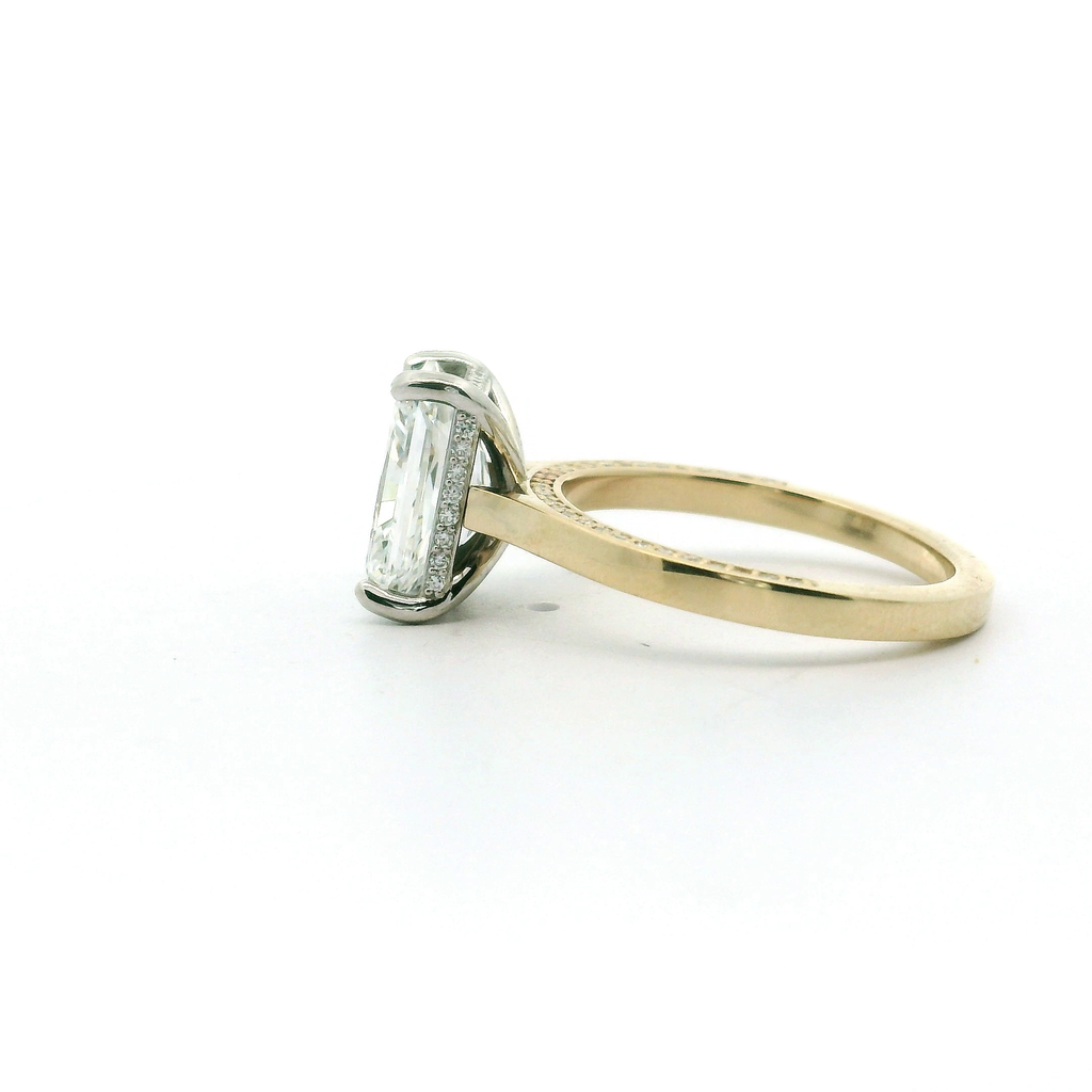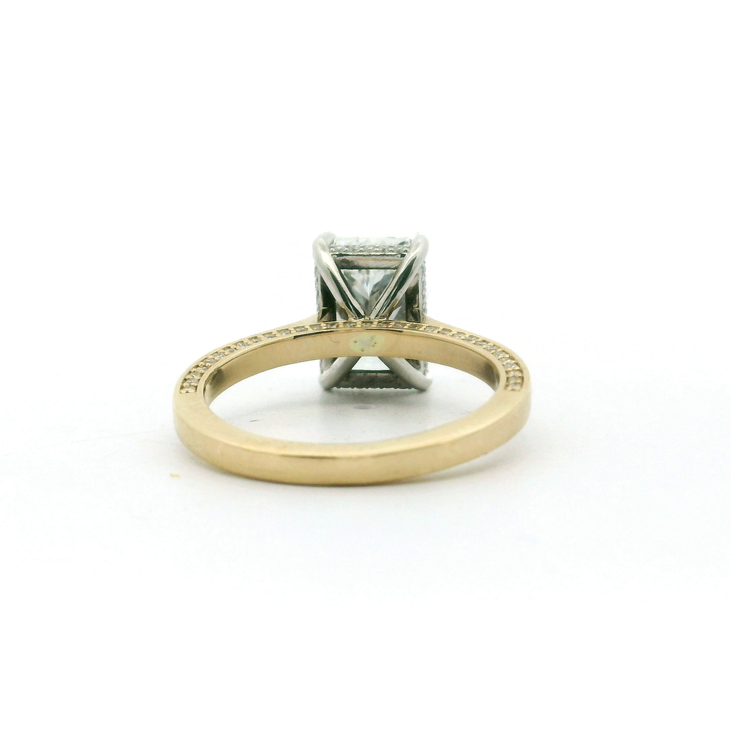 Yellow 14 Karat Lab Grown Diamond Engagement Rings containing (1) 3.60ct lab grown radiant diamond F VVS2 10.73-7.57-5.15 and (62) 1mm Lab grown diamonds F VS1 .29ctw and (26) .9mm round lab grown diamonds F VS .08ctw for total diamond weight of 3.97cttw Size 8.5