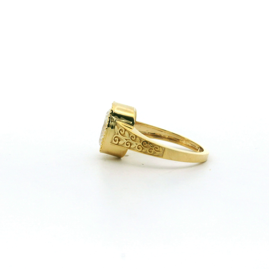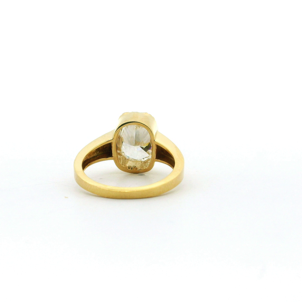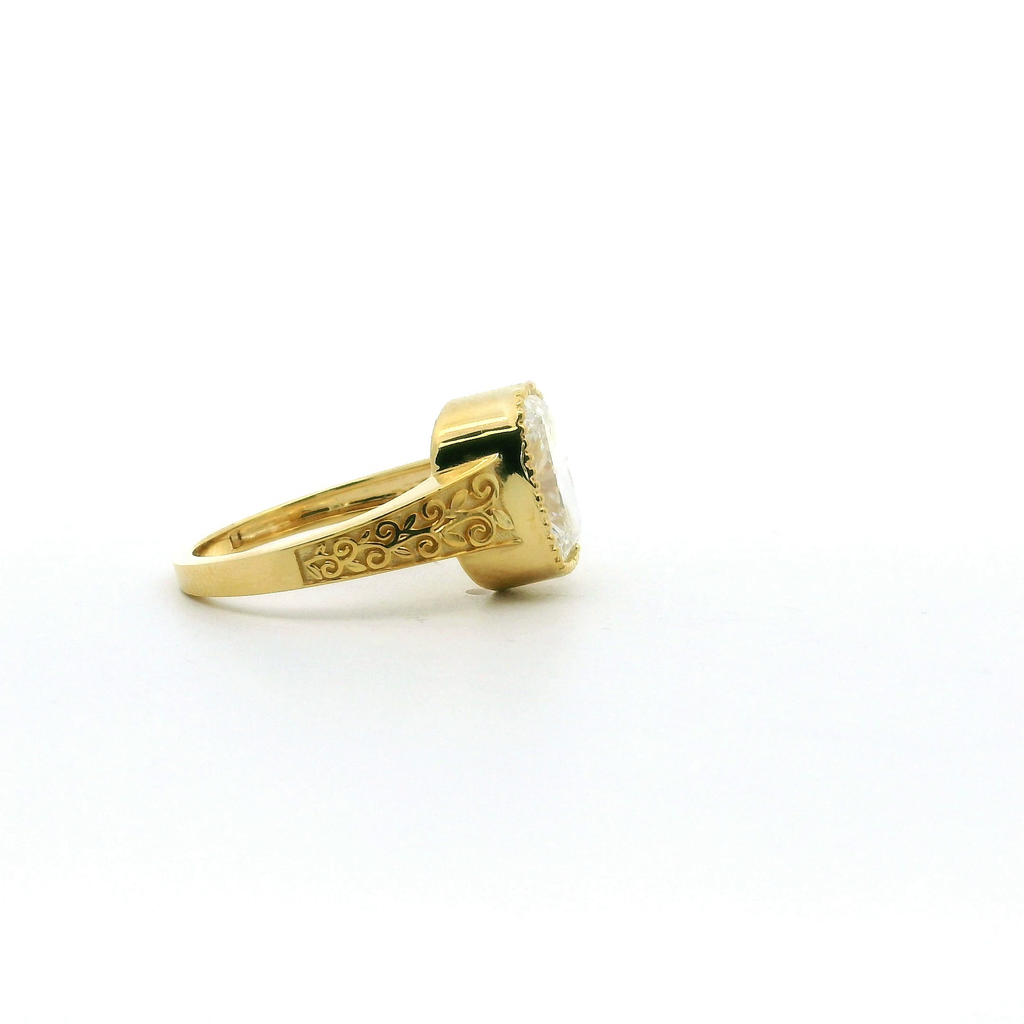 Elegant and timeless, this 14K yellow gold engagement ring showcases a stunning 3.07 carat rectangular cushion lab-grown diamond. Graded E color and VS1 clarity, the center stone delivers exceptional brilliance and refined sparkle. The warm yellow gold setting beautifully enhances the diamond’s radiance, creating a classic yet modern symbol of