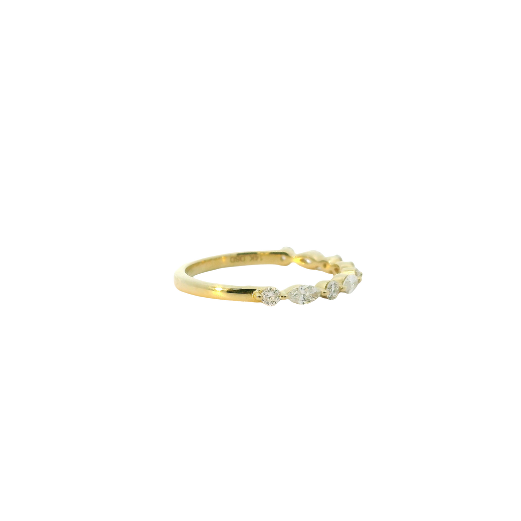 Yellow 14 Karat Lab Grown Diamond Wedding Bands With 5 Round F Vs1 Diamonds And 4 Marquise Diamonds 0.40Tw