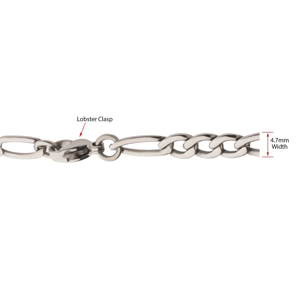 4.7mm, 24" Titanium Figaro Chain NecklaceDiscover the perfect blend of modern style and durability with the 4.7mm Titanium Figaro Chain Necklace. Crafted from lightweight yet strong titanium, this necklace features a classic Figaro design, alternating between oval and round links for a sleek, sophisticated look. Whether worn solo or paired with a pendant, this necklace offers a versatile, stylish addition to any jewelry collection.