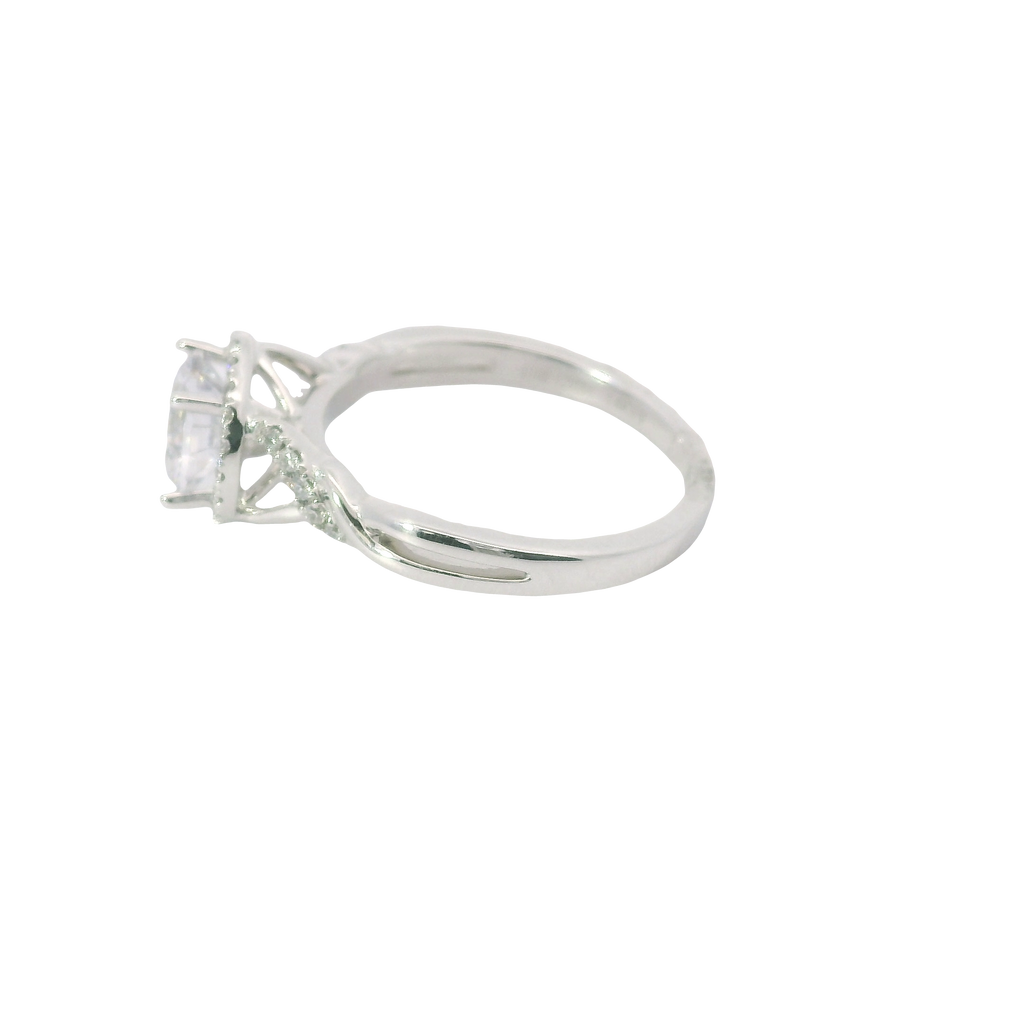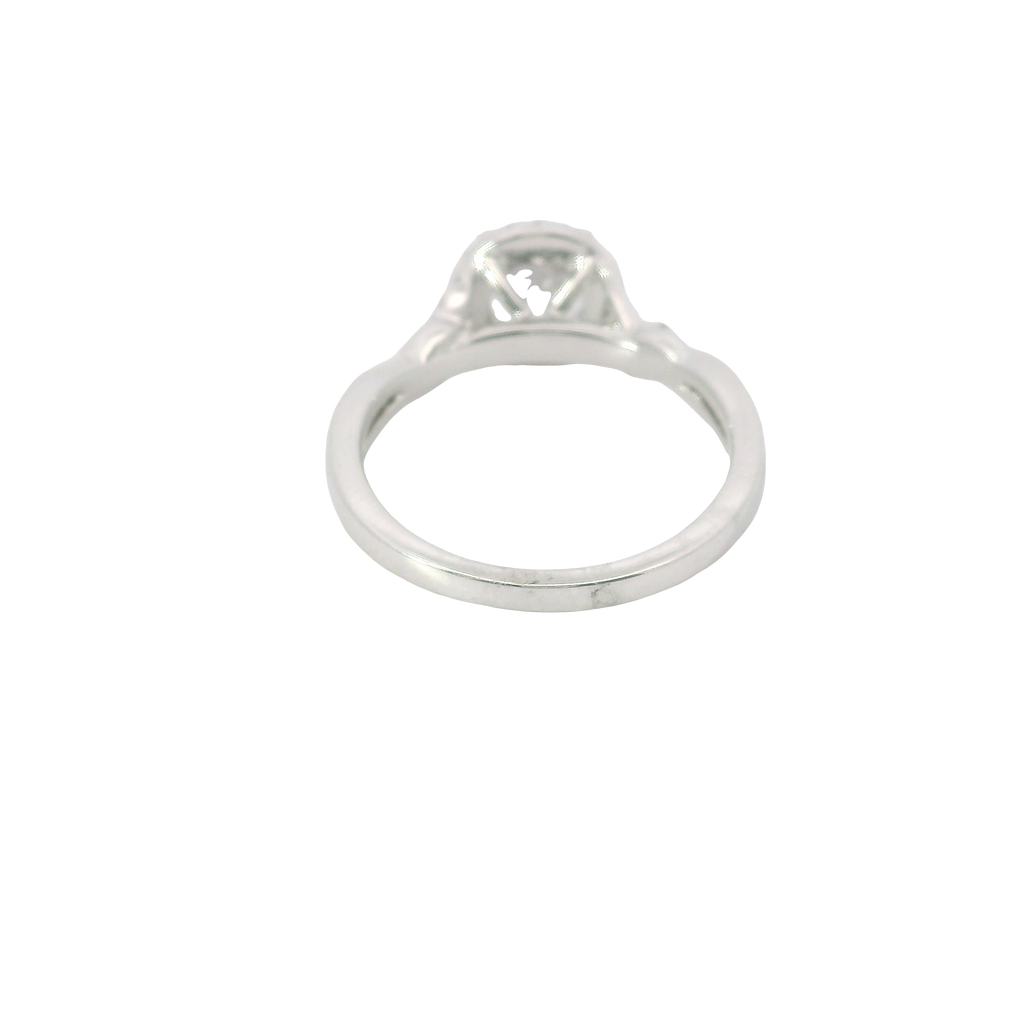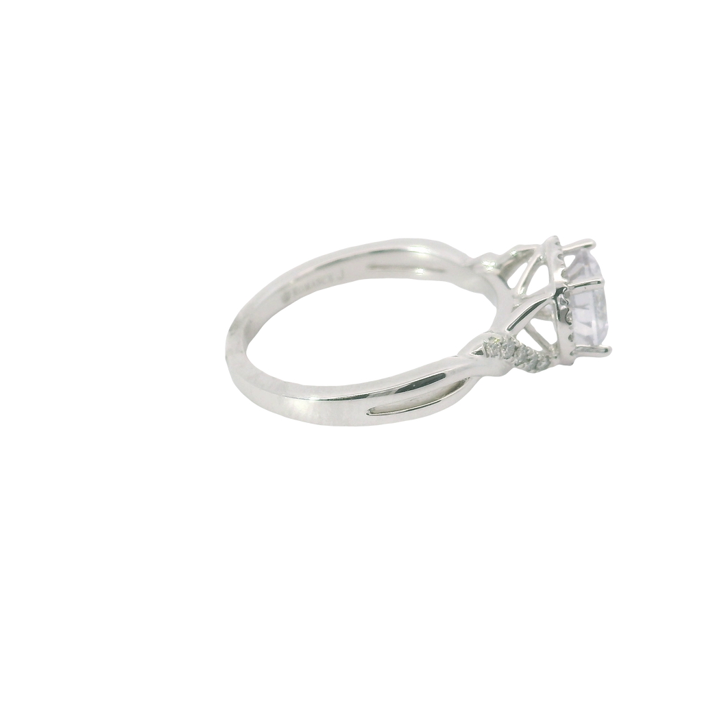 This elegant size 6 semi-mount ring is crafted in 14 karat white gold and features a round cubic zirconia center placeholder, designed to showcase your chosen center stone. Accented with 30 rose-cut diamonds totaling 0.16 carats (H/I color, SI2 clarity), the setting offers a soft vintage-inspired sparkle, perfect for those seeking a unique and customizable engagement ring.
