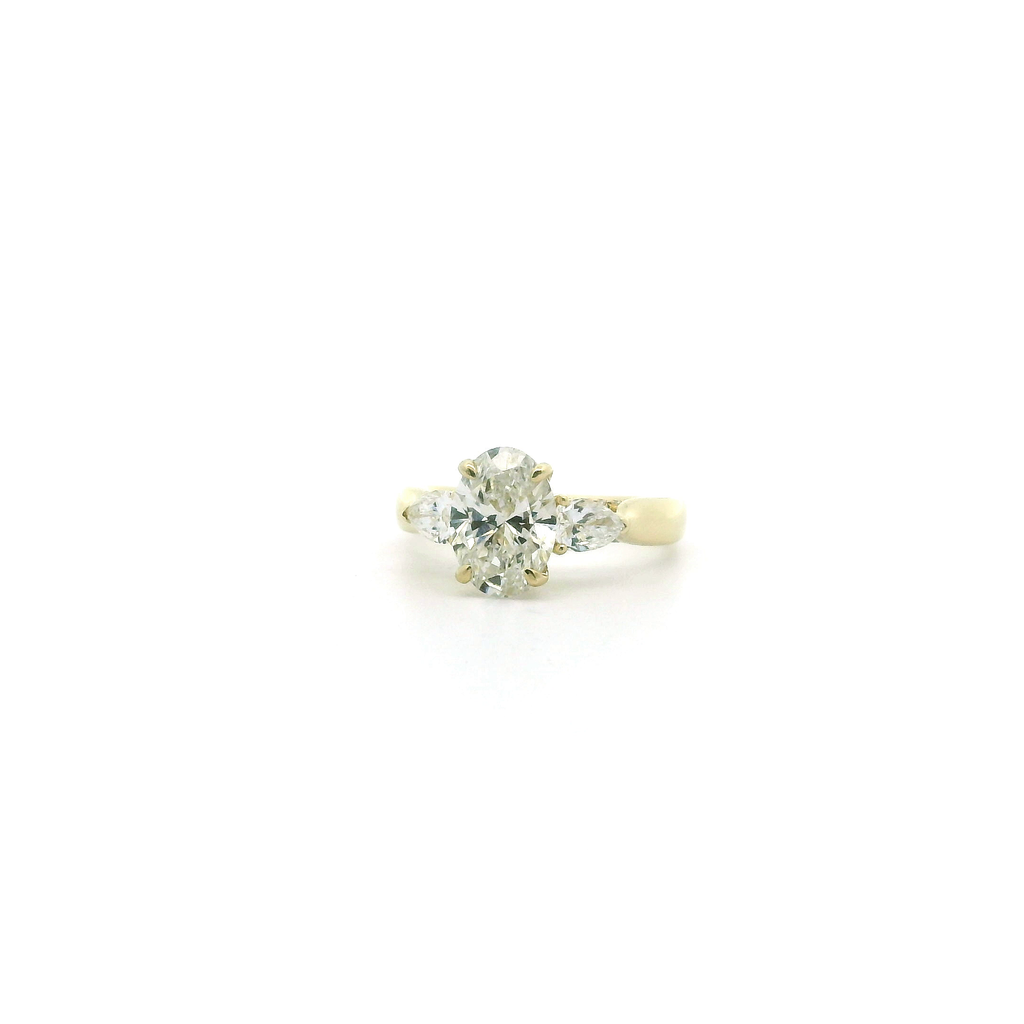 Yellow 14 Karat Lab Grown Diamond Engagement Rings With One 2.00Ct Oval F Vs1 Diamond IGI , 2=0.65Tw Pear F/G Vs2 lab grown Diamonds And (22) round lab grown diamonds for total diamond weight of 2.65cttw 3.14dwt