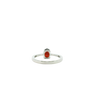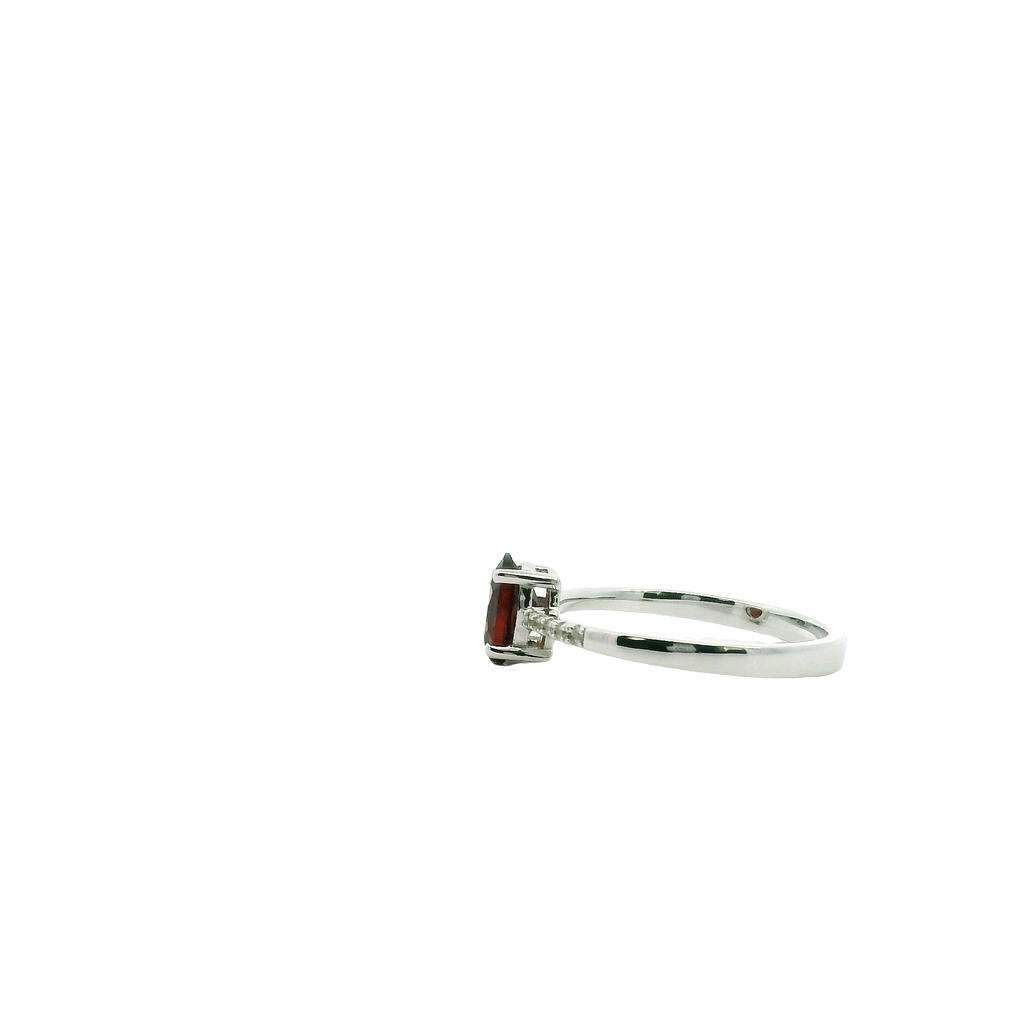 This stunning sterling silver ring features a deep red 5x7mm oval-cut garnet—the stone of passion, strength, and protection—set at the heart of a graceful band. Five shimmering round cubic zirconias accent the center stone, adding a refined sparkle that enhances the garnet's rich, fiery hue.