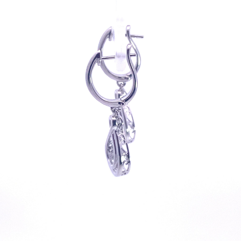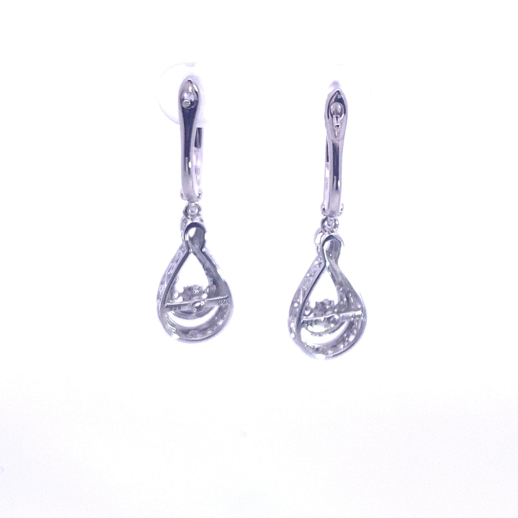 Lady's Sterling Silver dangle heart Earrings With = Round Cubic Zirconiums