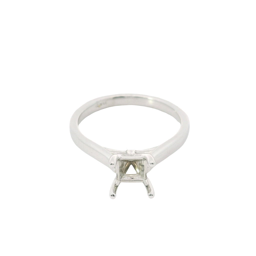 This timeless solitaire semi-mount is crafted in high-polish 14 karat white gold, offering a sleek and elegant foundation for the center stone of your choice. The classic setting is designed to showcase your diamond or gemstone with maximum brilliance and minimal distraction. Perfect for those who appreciate refined simplicity, this mounting allows you to create a truly personal and enduring engagement ring.
