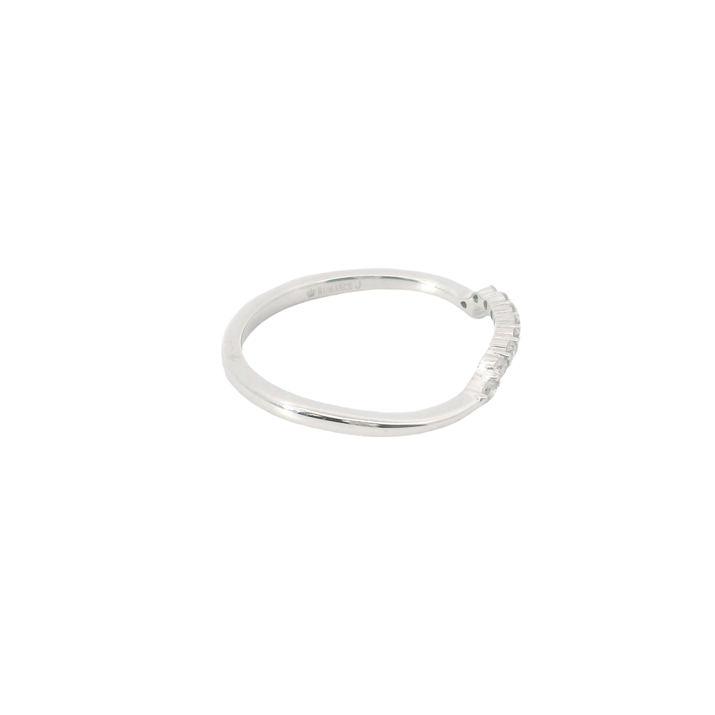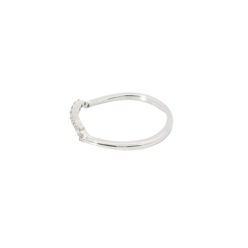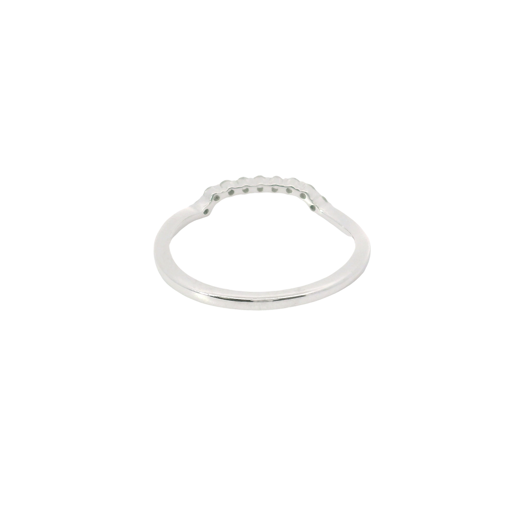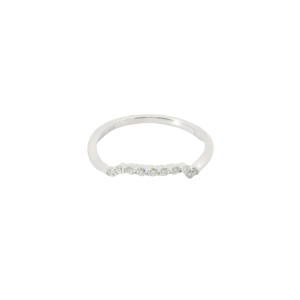 Gracefully crafted in 14 karat white gold, this size 6 wedding band features nine round H SI1 diamonds totaling 0.14 carats. The diamonds are thoughtfully spaced to offer a subtle, refined sparkle—perfect for pairing with an engagement ring or wearing solo as a delicate expression of everlasting love. Understated yet elegant, it’s a timeless piece made to cherish.