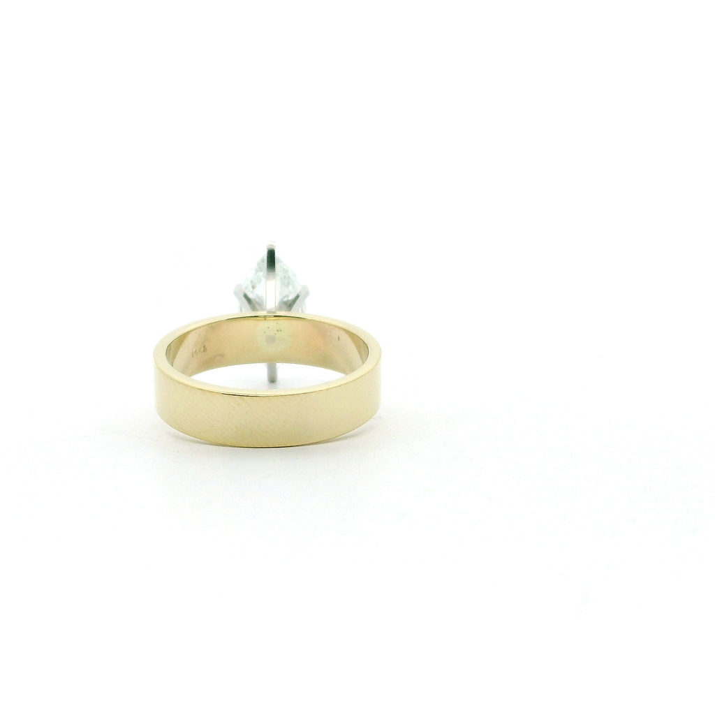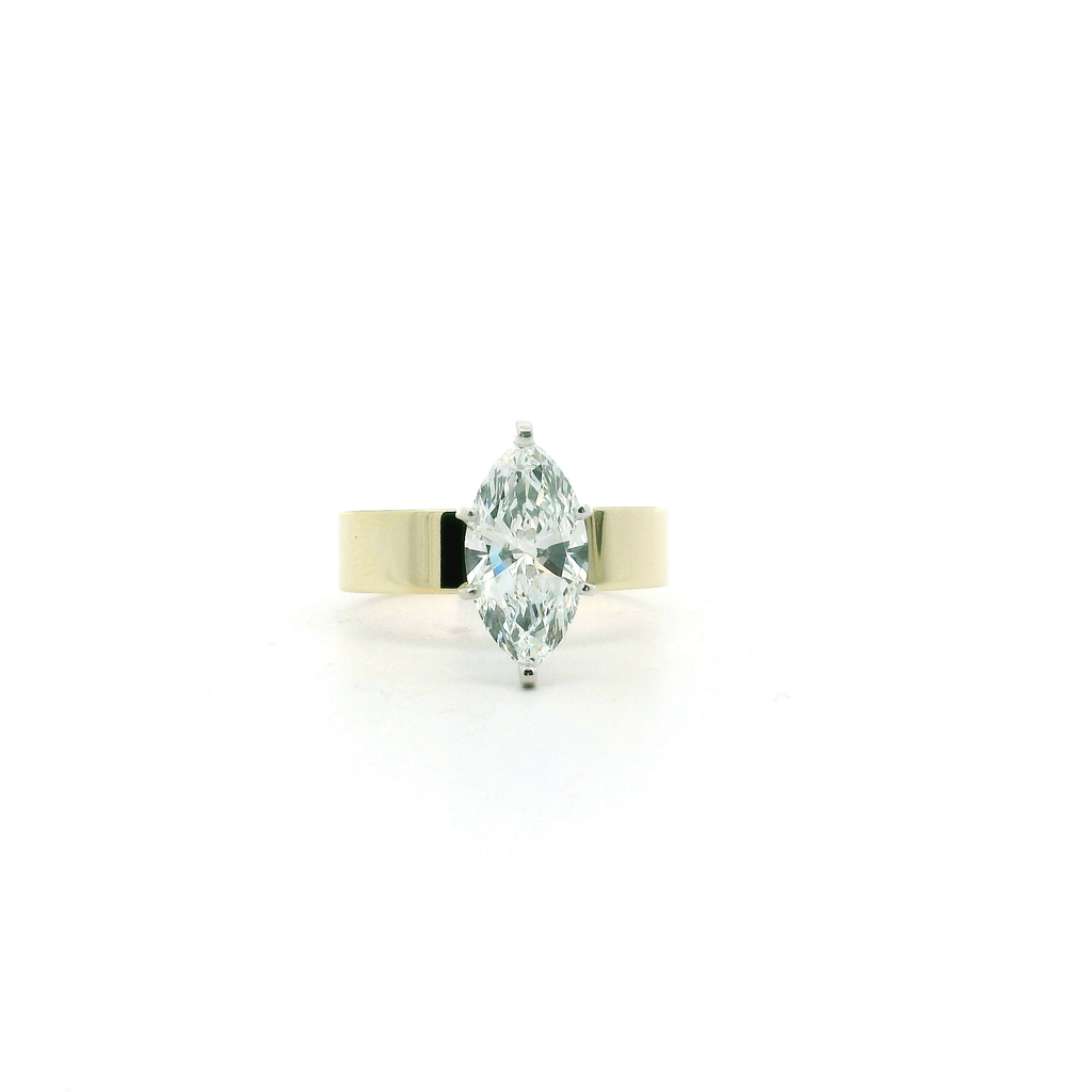 Yellow 14 Karat Lab Grown Diamond Engagement Ring containing (1) 2.04ct lab grown marquise diamond D VVs2 13.02-6.81-4.10mm IGI LG739588872 set on 5mm flat band Size 7.25